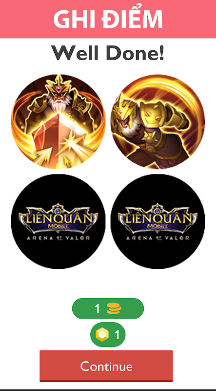 * Đoán tướng qua 2 trong số 4 icon skill, tap chọn kí tự phù hợp.