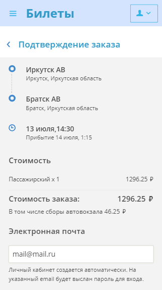 在應用程序,你可以買到車票到伊爾庫茨克地區的管理和附近地區。