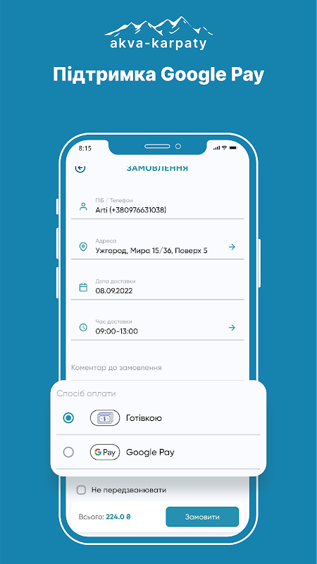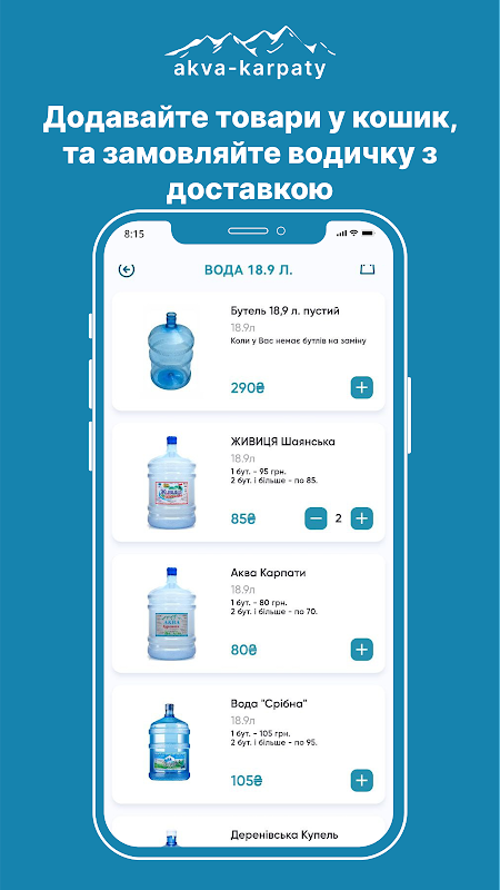 用於訂購和交付 Aqua Carpathians 水的移動應用程序