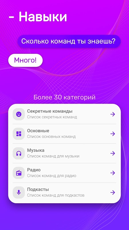 我們的團隊在一個應用程序中收集了大量有用的命令。使用語音命令,您可以搜索網絡、打電話給朋友、管理鬧鐘、創建聯繫人等等。現在使用您的智能手機將變得越來越容易!