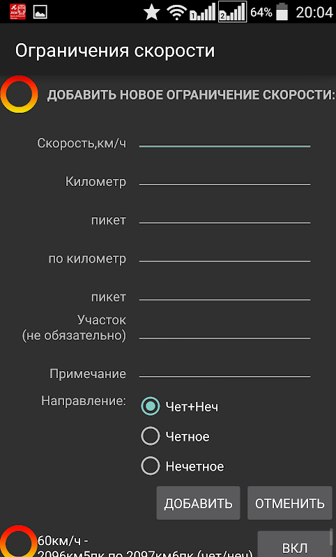 2. Ввод предупреждений, мест опробования тормозов, обрывных километров;