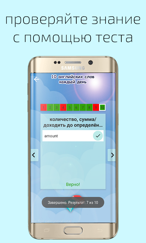Хотите быстро пополнить свой запас английских слов и изучить английский язык не прилагая больших усилий? Приложение "10 английских слов каждый день" поможет вам в достижении этой цели! Изучайте по 10 слов каждый день, проверяйте их знание с помощью теста, а также, при желании, повторяйте все изученные слова.