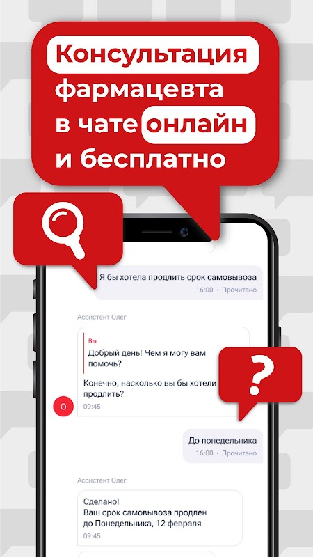 — 24小時與藥劑師聊天諮詢:他會幫助您訂購藥片和維生素或選擇類似物。