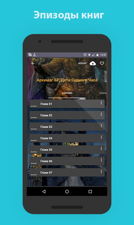- Сохранение аудиокниги на SD-карте для автономного прослушивания.