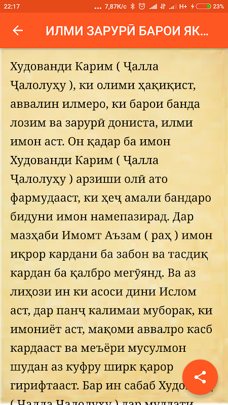 Алҳамду лиллоҳи раббил оламин вас салоту вас салому ало сайидино ва мавлоно Муҳаммадин ва ало олиҳи ва асҳобиҳи аҷмаъин бираҳматика ё арҳамар роҳимин. Аммо баъд хонандагони нихоят муҳтарам ва дустдоштанӣ!