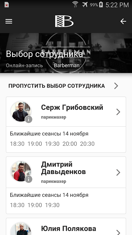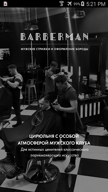 Приложение для онлайн записи в "BARBERMAN" - Цирюльню с особой атмосферой мужского клуба для истинных ценителей классического парикмахерского искусства.