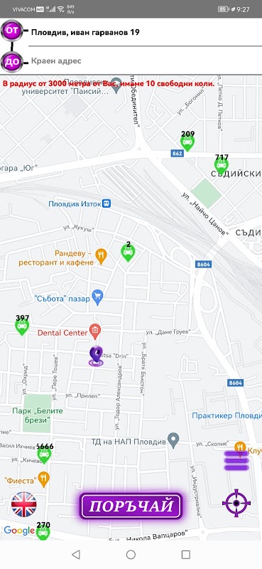 在手機上僅需兩個按鈕,即可從Violet Taxi Plovdiv訂購出租車