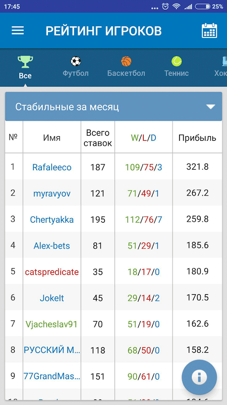 Рейтинг прогнозистов на сайте, который показывает и определяет топ прогнозистов сайта.