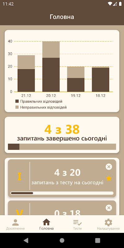 在此應用程序中,您不僅可以學習材料並進行測試,還可以將您的結果與其他接受測試的用戶的結果進行比較。