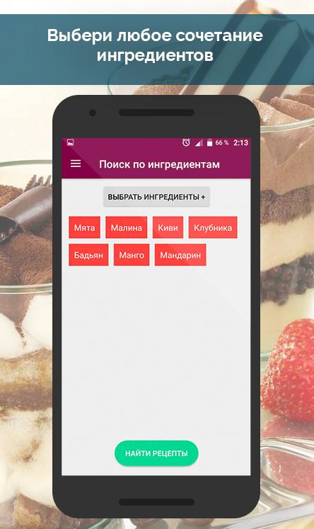А может и этого не нужно будет делать! В приложении есть поиск по продуктам! Загляните в холодильник, выберите в приложении имеющийся продукты и программа найдет подходящие пошаговые фото рецепты с совпадением ингредиентов. Вам нужно будет только выбрать понравившейся десерт и приготовить его своими руками.