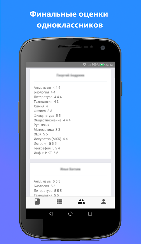 Вы можете просматривать оценки за все периоды, свои данные, финальные отметки своих одноклассников, а также список домашних заданий бесплатно и без рекламы.