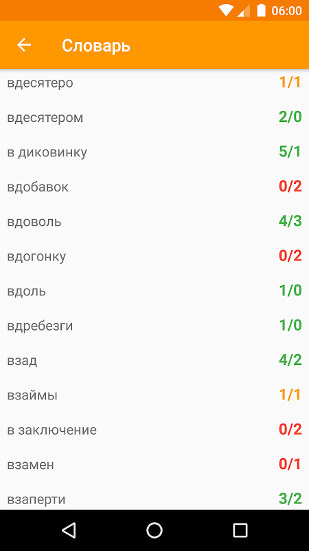 В приложении доступно 503 самых популярных наречий. Также можно просматривать статистику ошибок.