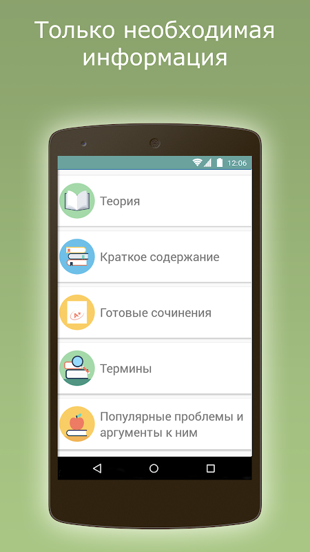 Структурированная теория по русскому языку, краткое содержание произведений, готовые сочинения, термины для ЕГЭ по русскому языку, проблемы и аргументы - это и многое другое в нашем приложении!