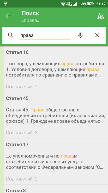 - Просмотр текста закона в виде удобного перелистывания статей, возможностью копирования выделенного фрагмента, поиска по тексту