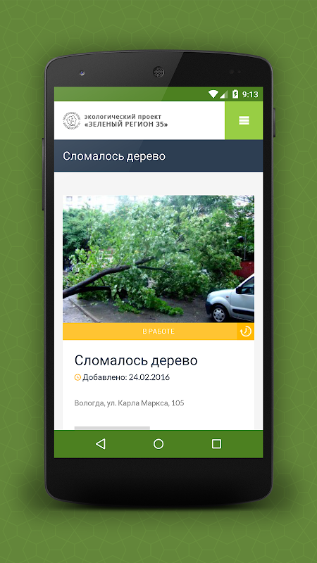 Мобильное приложение для формирования сообщения об экологических проблемах в регионе (очагах: свалки, мусор, загрязненная река и прочее), переслав фотографию и координаты очага.