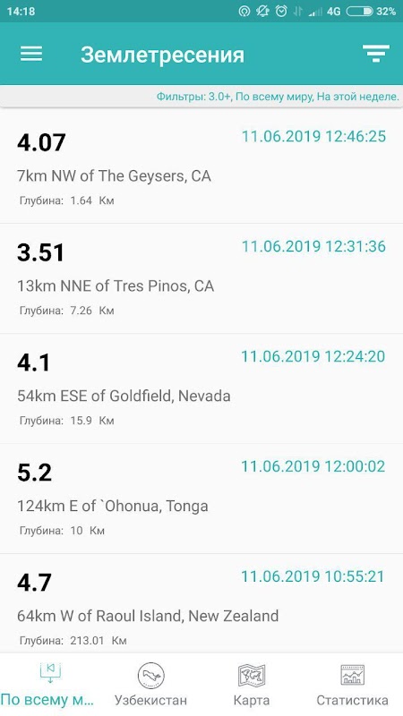 應用程序“地震會計”旨在通知用戶發生的地震。有關地震的信息與地質點相關聯並顯示在地圖上。需要有關用戶位置的數據才能快速過濾數據。因此,首先,用戶只會收到相關的相關數據。