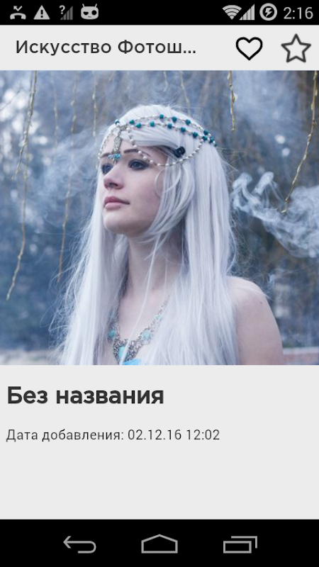 В приложении "Искусство Фотошопа" собрано огромное количество самых интересных материалов обработок фотографий, авторами, которых являются только опытные мастера. Приложение представляет собой фотоальбом, где можно найти каждому желающему интересные фотообработки. Все представленные работы имеют абсолютно разную тематику, с большим разрешением и в хорошем качестве.