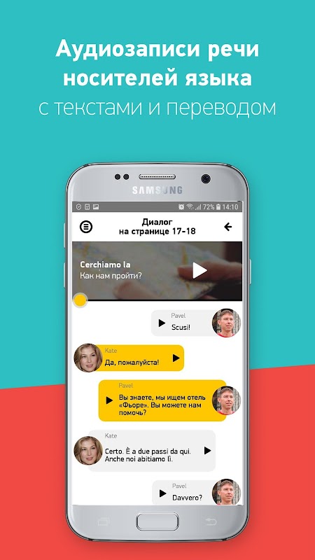 該應用程序包括兩個聽力與俄語翻譯母語閱讀的對話,以及練習。