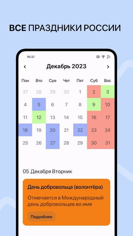 該應用程序包含有關俄羅斯法定假日、紀念日、專業假期、縮短工作日和公共假期的數據。