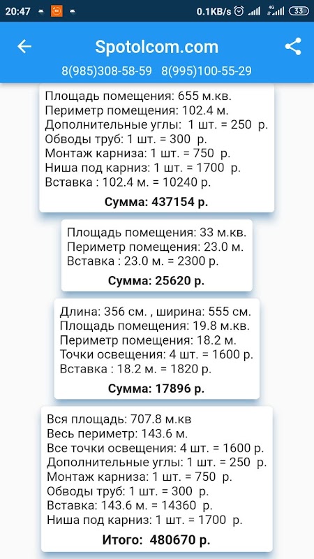 按房間的寬度和長度或按面積計算工作成本。可以添加其他服務。計算安裝照明、繞過管道、添加的成本。角、插入物等