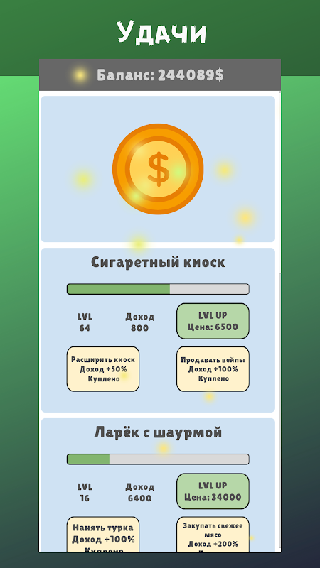 在“Business Clicker”遊戲中,您將打開自己的小售貨亭。一旦您的點數開始帶來可觀的利潤,您就可以進一步平倉。例如,您將開設一家洗車店和一家遊戲俱樂部。對於已經承諾以正確收入獲得豐厚利潤的人來說,這兩者都是必要的。