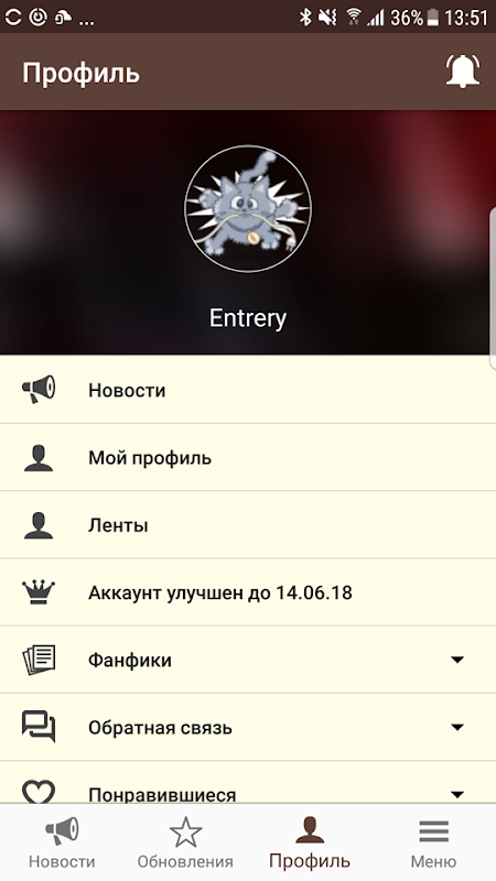Мобильная версия сайта Книга Фанфиков в оболочке приложения для Android. в приложении доступны все функции сайта.