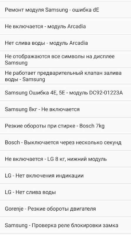 該程序包含大量關於洗衣機 - 乾衣機 - 洗碗機,冰箱和其他有用信息的錯誤代碼的材料。