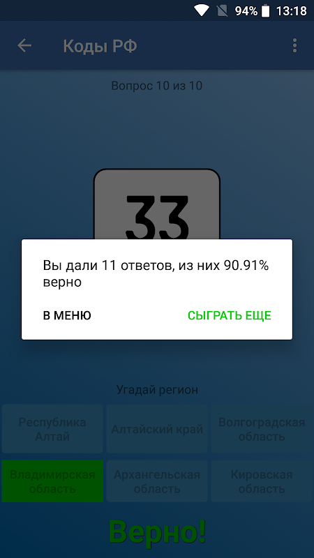 ⍟“按代碼猜測區域”模式。在其中,您需要從幾個答案選項中選擇顯示的數字屬於哪個城市或地區。