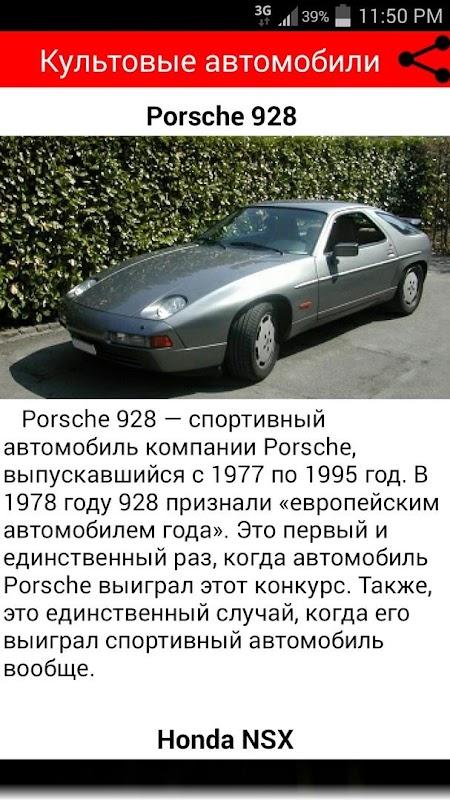В приложении " Коллекция культовых автомобилей " собраны самые красивые, стильные и культовые машины всех времен и народов.