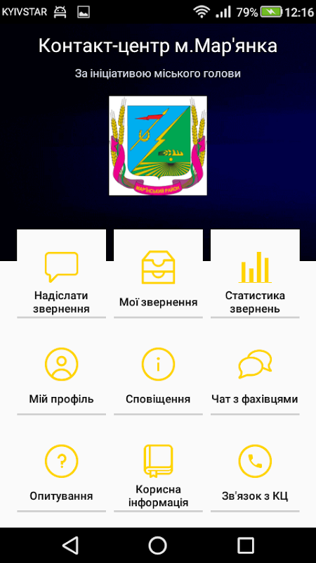 «Контакт-Центр м.Мар'їнка» - це комплексна система управління зверненнями громадян, для зручності використання якої було розроблено цей мобільний додаток. За допомогою мобільного додатку можна: