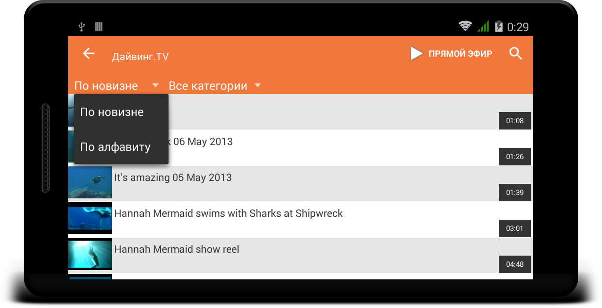 Предоставлена возможность просмотра программы передач, а также просмотра роликов телеканала, не дожидаясь, пока они появятся в эфире. Ролики организованы по рубрикам, и вы можете легко найти и выбрать интересующий вас контент, сразу же приступив к просмотру.