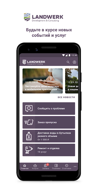 Через мобильное приложение "ЛАНДВЕРК СЕРВИС" вы можете:
