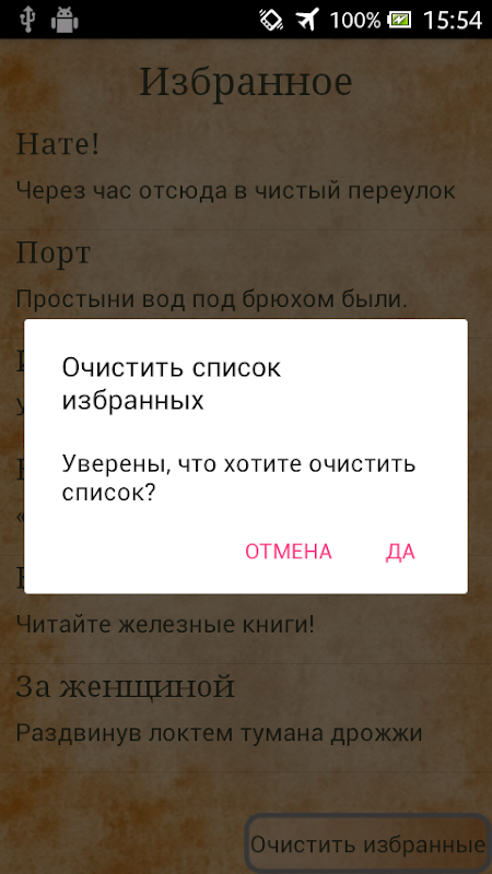 Возможность добавлять стихи и поэмы в список избранных, убирать из списка по отдельности и полностью очищать список.