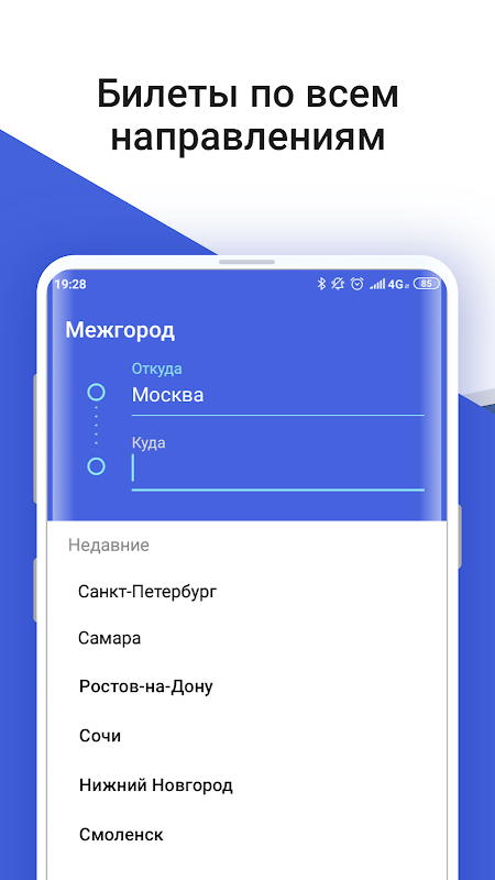 Бесплатное мобильное приложение Межгород работает более чем на 1000 направлений по всей России. Больше не нужно стоять в очередях на вокзале: сравнивайте цены и забронируйте нужный вам рейс прямо из приложения.