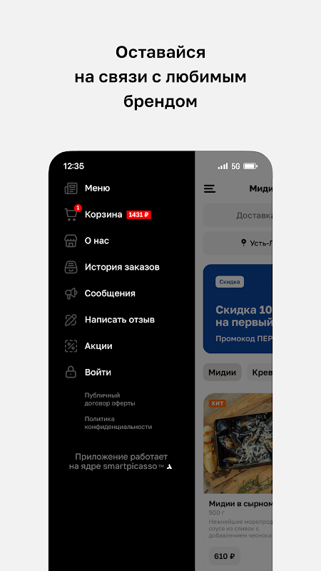 「Midiynaya • Sea Place」是烏斯季拉賓斯克的送餐應用程式!
