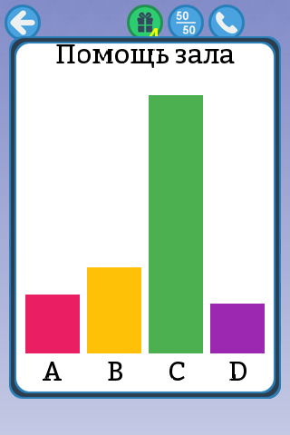 Отвечайте на вопросы различной сложности, зарабатывайте бонусы и пользуйтесь подсказками.