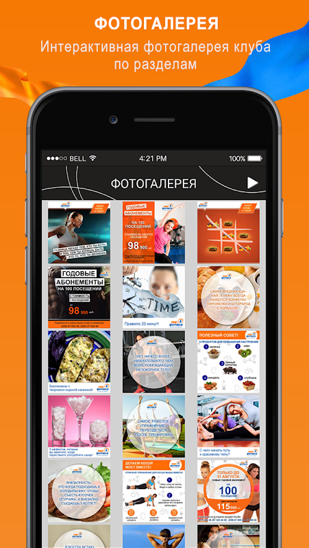 Для максимальной интеграции услуг клуба в мобильные устройства, простоты и лёгкости использования, получения пользователем максимального количества актуальной и полезной информации, в приложении создано 19 специальных функций.