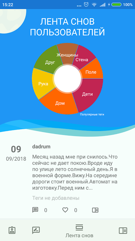4. Наиболее популярные теги у снов за последнее время отображаются в виде красивой диаграммы.