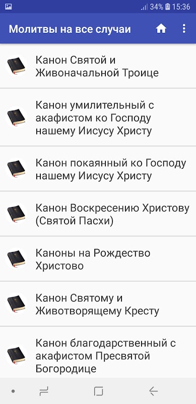 該應用程序包含人們在日常生活中最常使用的最常見的東正教祈禱。例如,為健康,為事業成功,擺脫腐敗而祈禱,等等。我們建議您安裝該應用程序並親自查看。如果您認為您需要在應用程序中添加一些新的內容,然後在評論中進行編寫,我們將為您提供幫助。向守護天使祈禱,為好運和成功祈禱,向奇蹟工作者尼古拉斯祈禱-您會在此應用程序中找到所有這些以及更多內容。僅收集最必要的內容,而無需Internet。下載該應用程序,並確保它適用於所有場合。所有祈禱都使用現代俄語,教堂斯拉夫尼克改編自祈禱書。該應用程序中添加了帶有音頻祈禱的部分-最必要的部分。