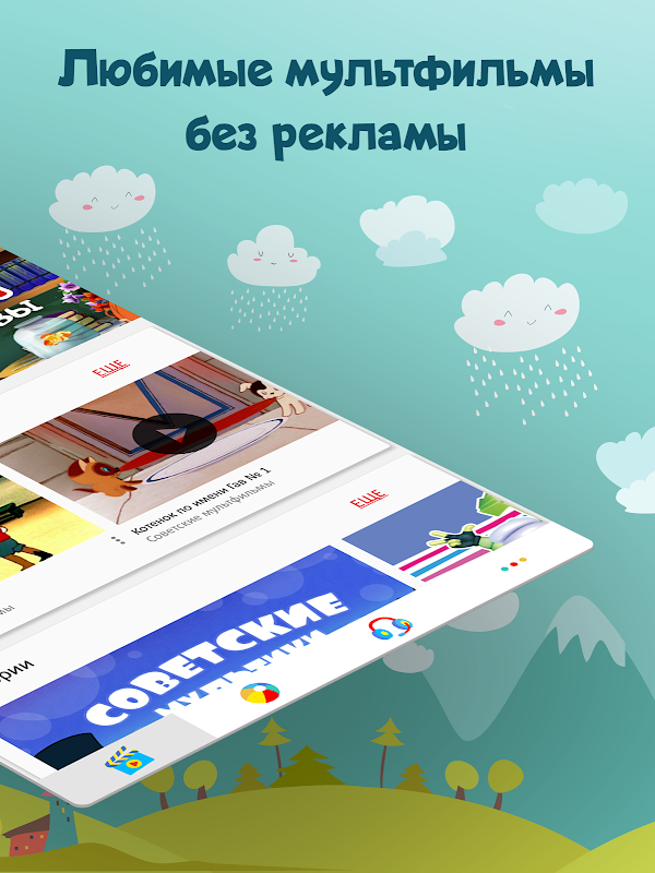 • Загружать мультфильмы на устройство и смотреть их без Интернета, даже в поездках у вашего ребенка всегда будут его любимые мультфильмы;