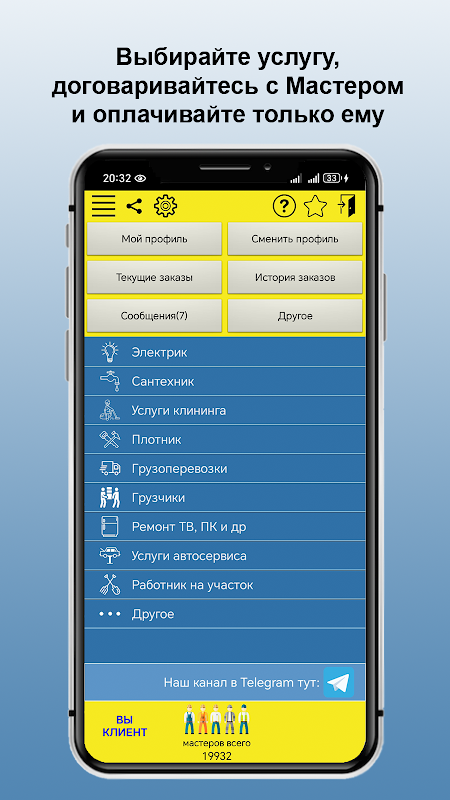 船長收到訂單並聯繫客戶。客戶可以向幾位大師下單,並自行決定選擇哪一個。因此,主服務器應該處於待機狀態,而不是客戶端。在這種情況下,應用程序不必一直處於打開狀態,但是必須每3個月至少啟動一次該應用程序,否則您的個人資料將被刪除,恕不另行通知。對我們來說,保持大師級基礎很重要。
