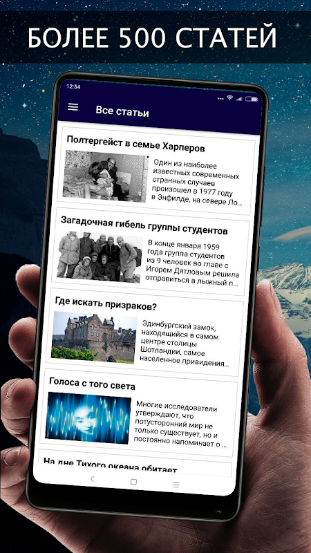 В приложении есть все, что может быть Вам интересно: мистика, инопланетяне, НЛО, полтергейст, привидения, необъяснимое, оборотни, вампиры и многое другое.