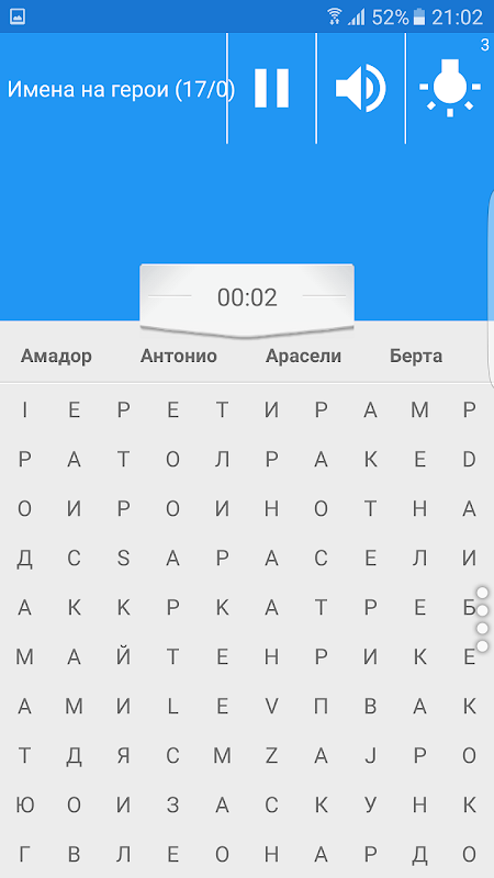 Подходяща за игра по всяко време, от хора на всякаква възраст. Имате свободна минутка? Можете ли да намерите името на Амадор, Берта, Висенте или Ресио сред бърканицата от букви?