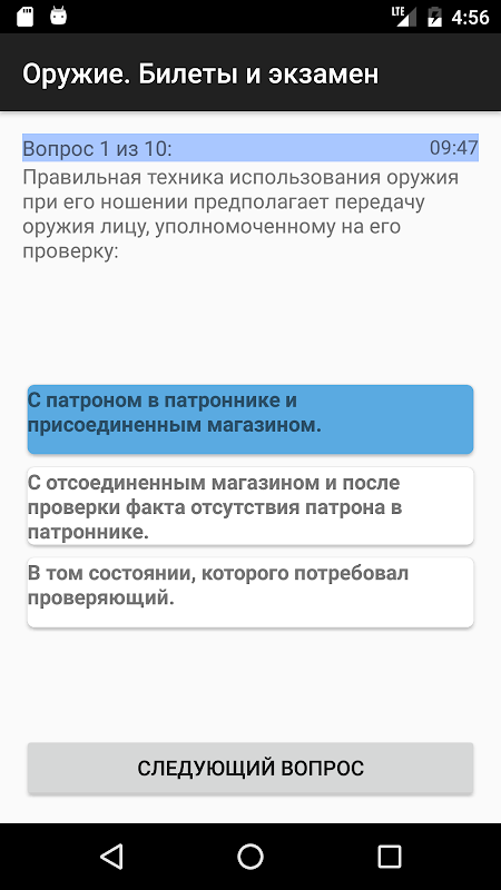Приложение позволяет эффективно подготовиться к сдаче теоретического экзамена на приобретение и ношение гладкоствольного, травматического оружия.