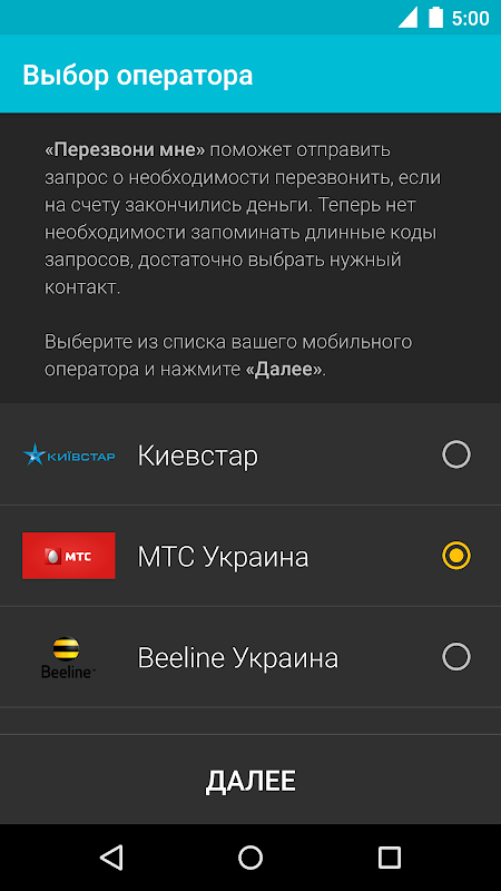Теперь нет необходимости запоминать длинные коды запросов, достаточно выбрать из списка нужный контакт, который получит смс "Перезвони мне" и нажать кнопку вызова.