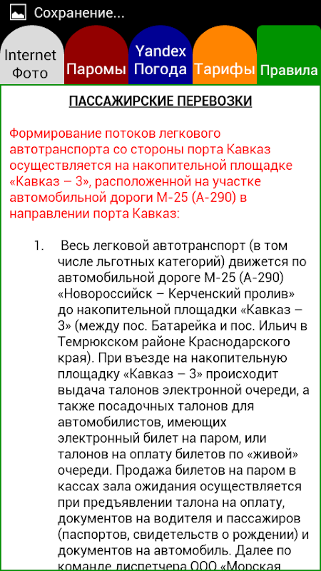 Также есть offline-расписание паромов, цен и правил перевозки.