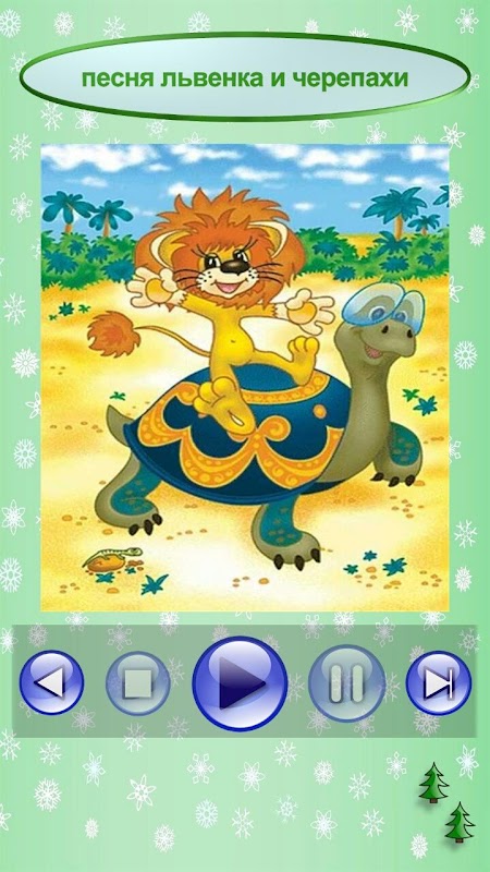 Приглашаем Вас окунуться в мир любимых песен нашего детства. Все любимые песни из сказок и мультфильмов в одном приложений. Включи детям или слушайте сами, погружайтесь в мир детства и добра вместе с любимыми персонажами.