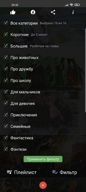 Загружайте сказки или отдельные главы на свое устройство чтобы слушать без интернета