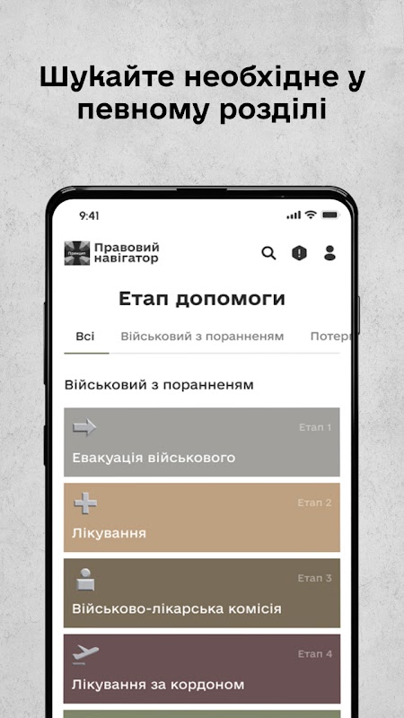 軍事人員和退伍軍人在獲取必要的文件、付款和狀態時的助手和指南,指導受傷後的治療路線,並保存報告模板,無需訪問互聯網即可進行編輯。此外,在應用程式中,您可以快速找到提供社會服務的中心、MSEK、復健機構的列表,並輕鬆規劃前往這些機構的路線。如果立法、新福利及其規定發生變化,Princip 團隊將能夠在應用程式中通知使用者。