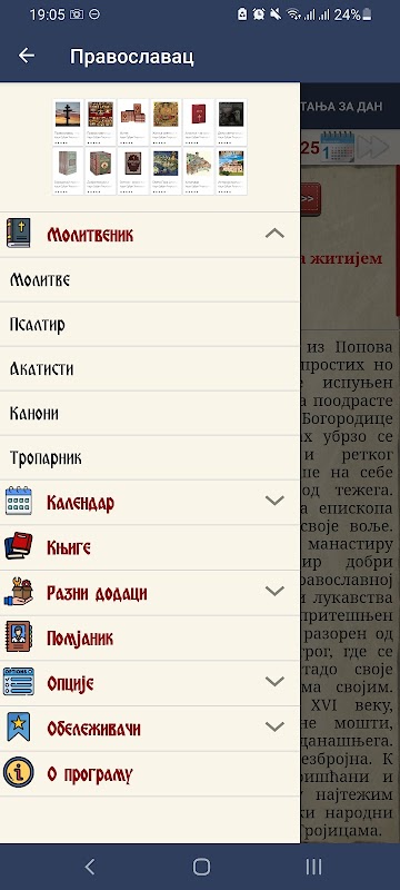 - 該節目還包含東正教教堂日曆,其中包含全年禁食的日期和聖徒的生活 - 一年中每一天的奧赫里德序言。 《聖徒生平》中描述了東正教聖徒的生平和事蹟。